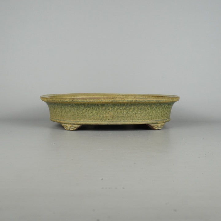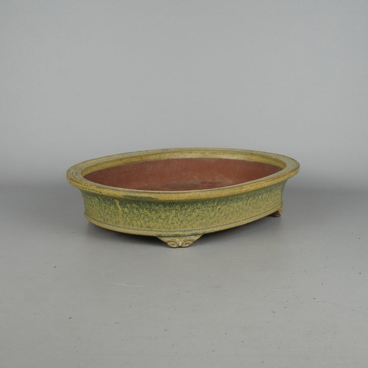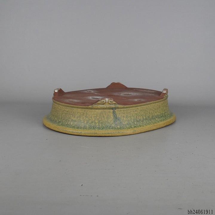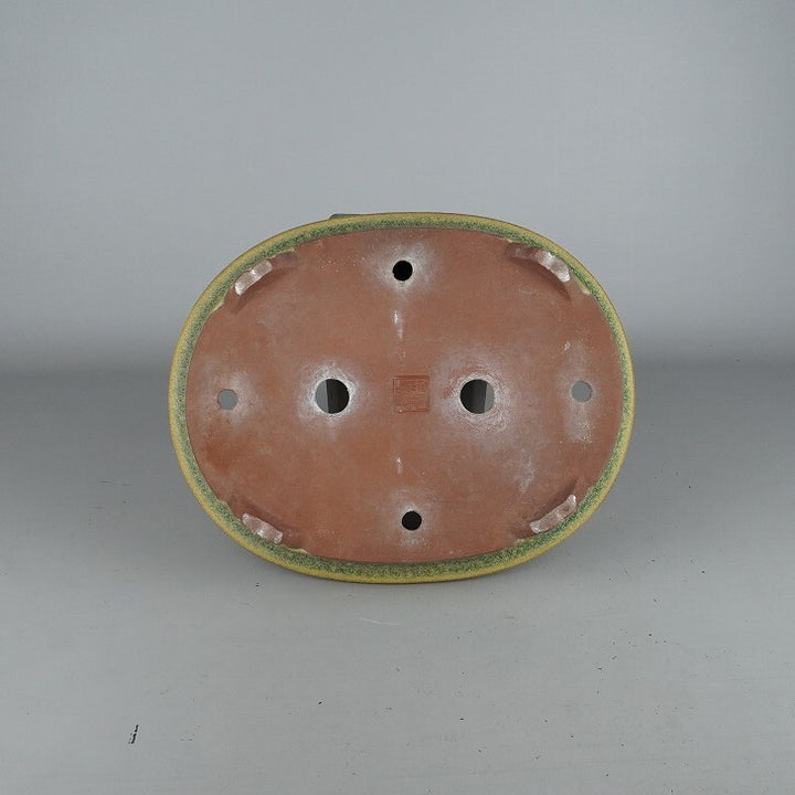 中古盆栽鉢 常滑 陶昇造 中型 長辺 約30.5cm 楕円鉢 外縁 下帯 釉薬 中古鉢 d1198421137