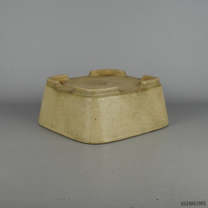 盆栽鉢 常滑 鴻陽造 中型 長辺 約24.8cm 正方鉢 撫角 釉薬 正角 現品 中古鉢 品名鴻陽造...