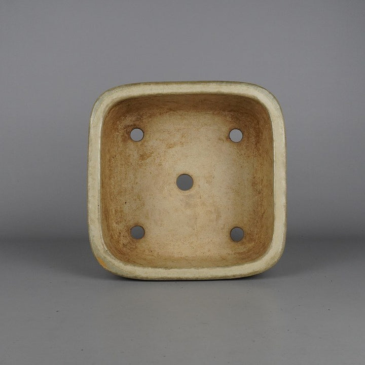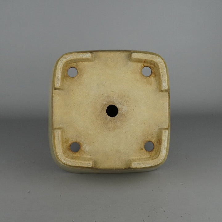 中古盆栽鉢 常滑 鴻陽造 中型 長辺 約24.8cm 正方鉢 撫角 釉薬 正角 中古鉢 1198408958