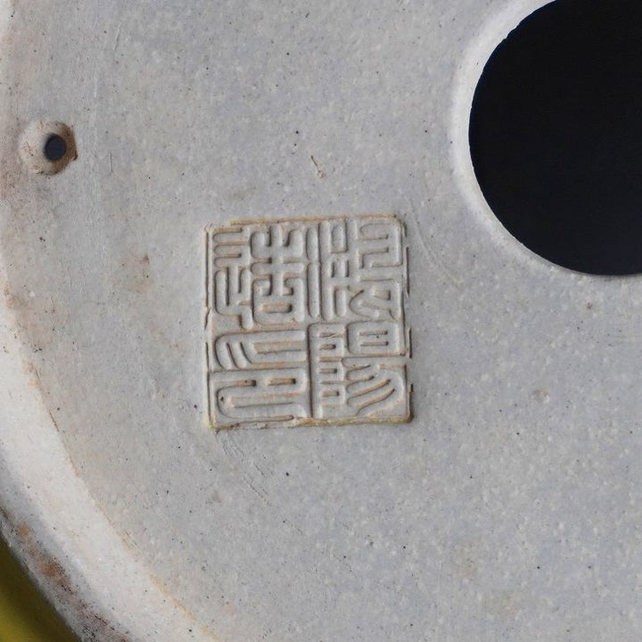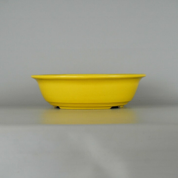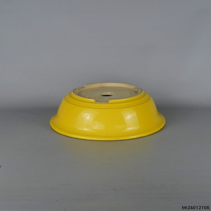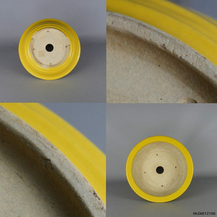 盆栽鉢 常滑 鴻陽 中型 長辺 約31cm 丸鉢 黄釉 釉薬 現品 中古鉢 鴻陽 本名 相羽鴻一郎 昭和45年に鴻陽陶園として開窯。 大小、釉色泥色を問わず作品には独特な工夫がこらされており、特に釉に対する造詣に定評がある。近年は釉色小鉢を量産的手法で提供することにも力を注がれている。...