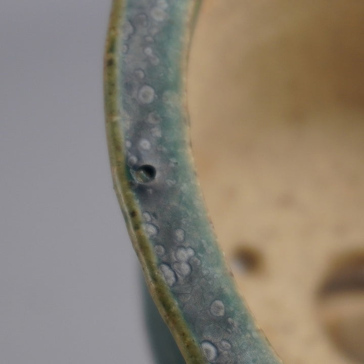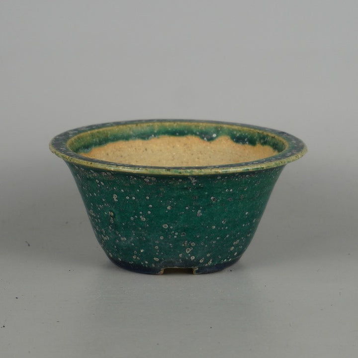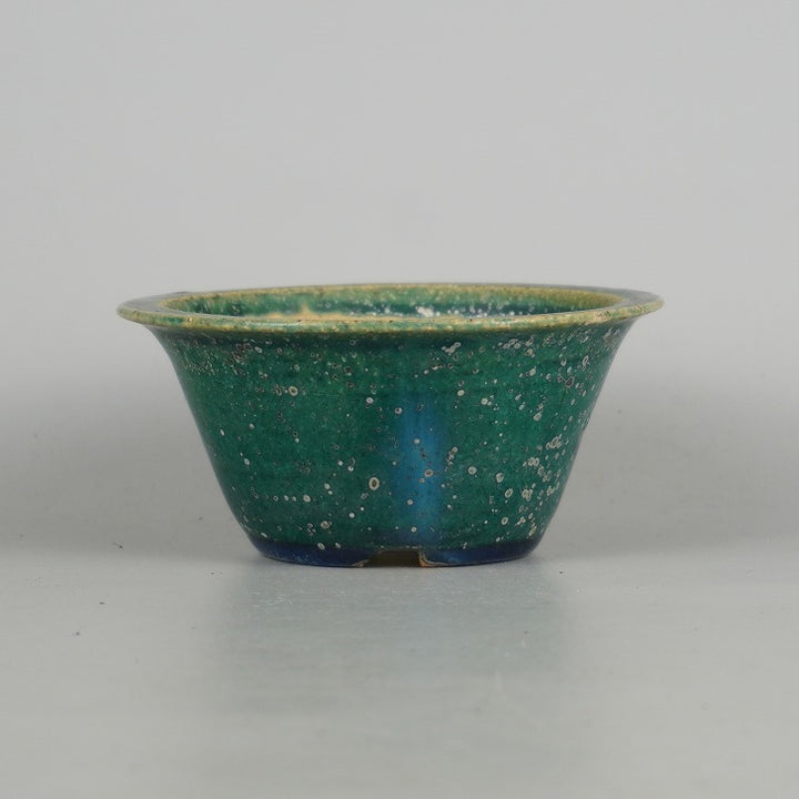 中古盆栽鉢 常滑 鴻陽 小型 長辺 約 11.2cm 丸鉢 外縁 釉薬 中古鉢 j1198414376