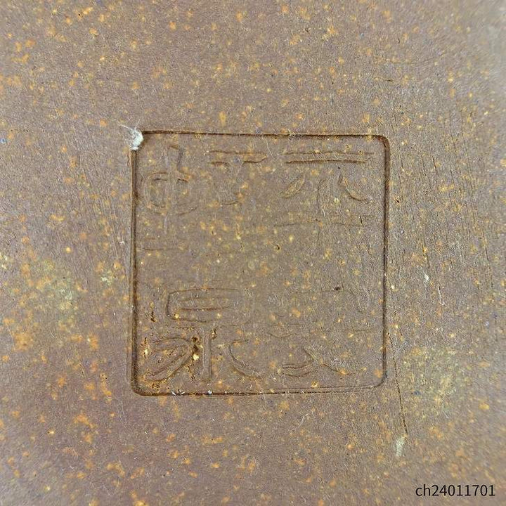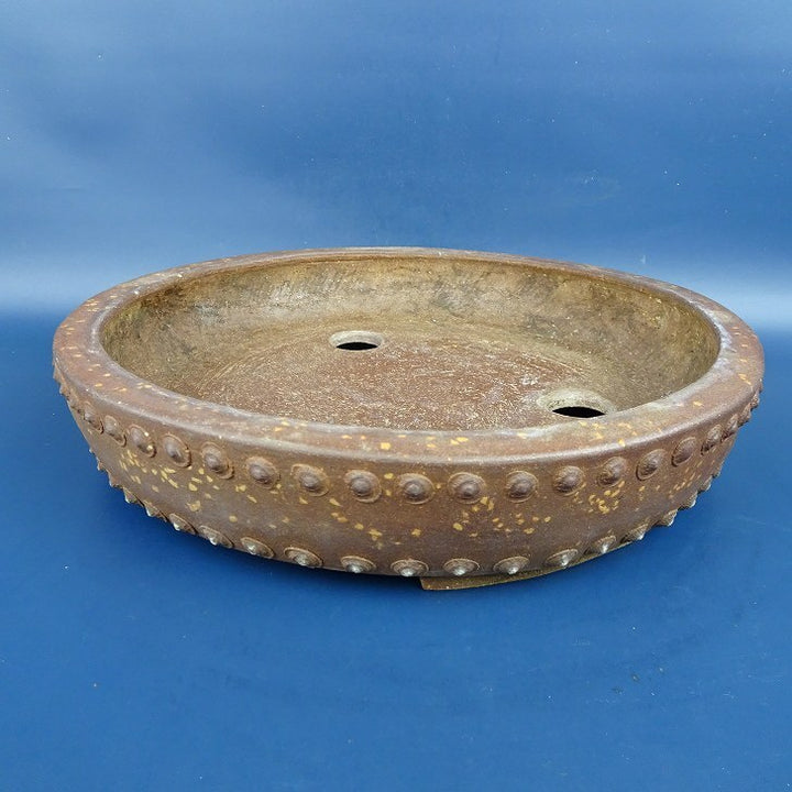 中古盆栽鉢 平安虹泉 中型 長辺 約26.3cm 丸鉢 鋲打 梨皮 泥鉢 中古鉢 j1198413224