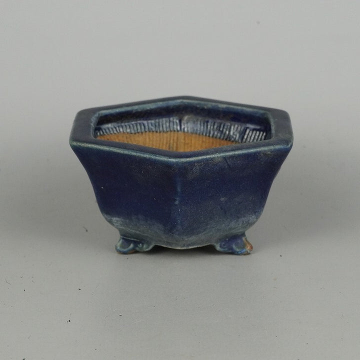 中古盆栽鉢 平安虹泉 小鉢 長辺 約11.3cm 六角鉢 雲足 釉薬 中古鉢 k1198406440