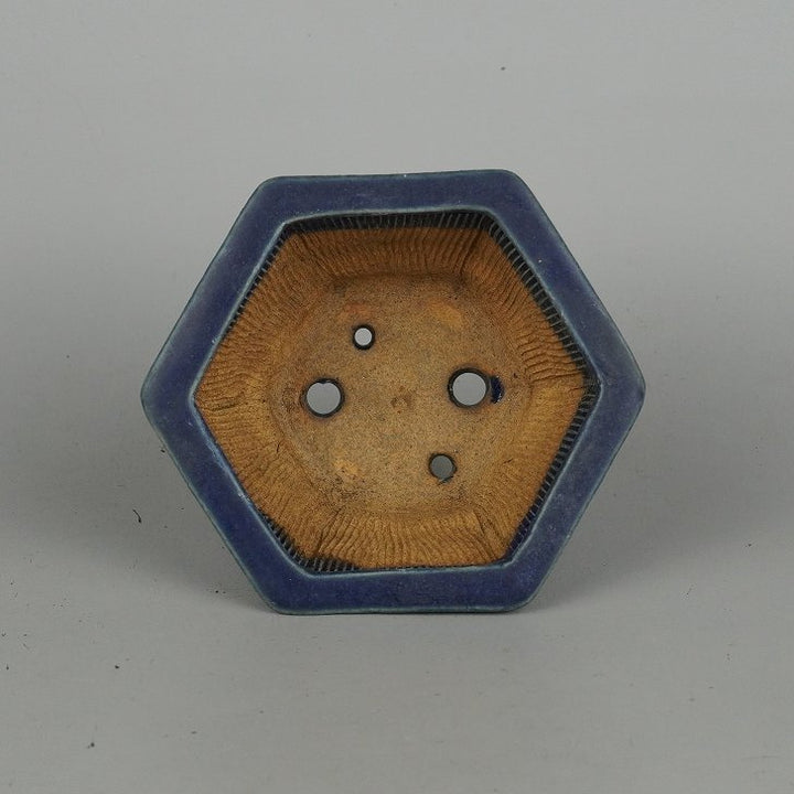 盆栽鉢 平安虹泉 小鉢 長辺 約11.3cm 六角鉢 雲足 釉薬 現品 中古鉢 品名平安虹泉...