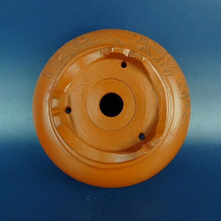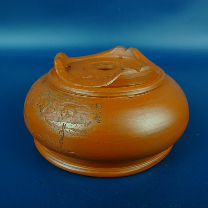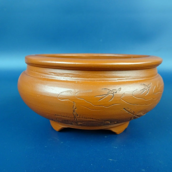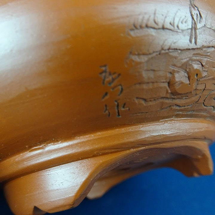 【中古】盆栽鉢 庄八 小鉢 長辺 約9.7cm 丸鉢 外縁 釘彫 人物 風景画 箱付 現品 中古鉢 品名庄八  (箱付)...