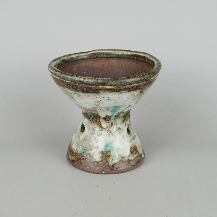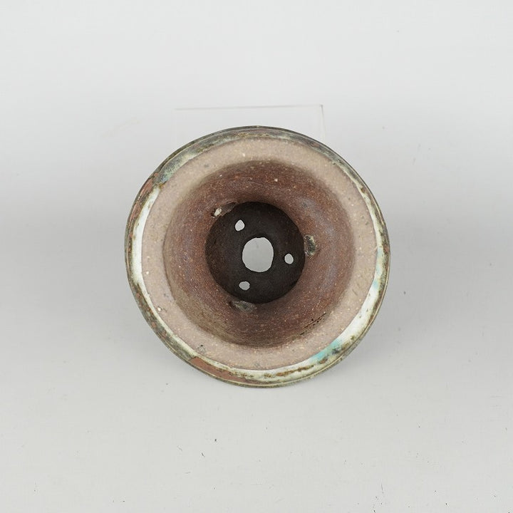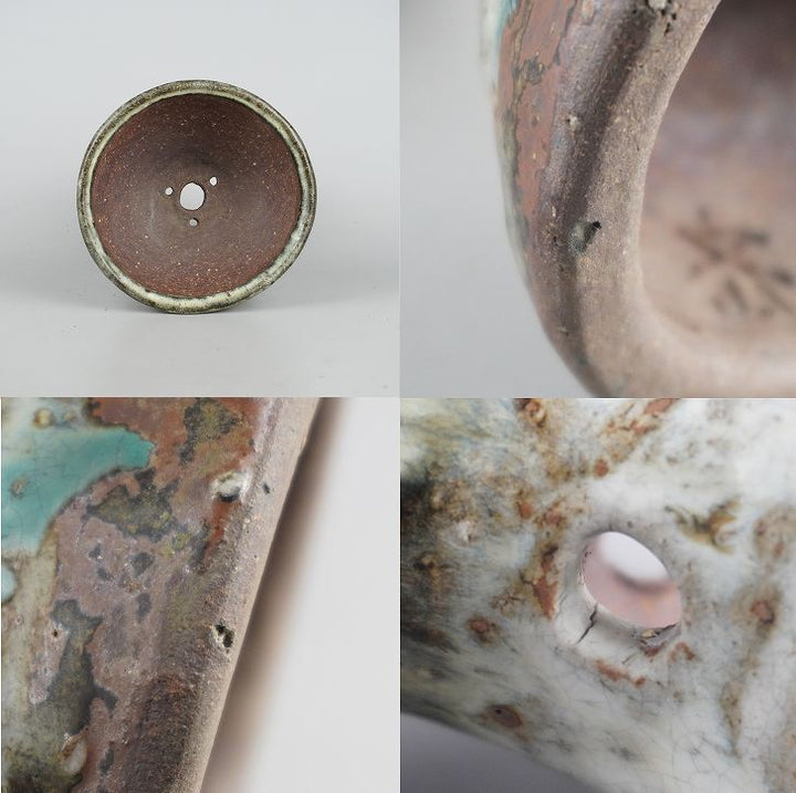 盆栽鉢 文山 越前文山 小型 長辺 約14.8cm 丸鉢 高杯 釉薬 現品 中古鉢 越前文山 1973年に鯖江園芸を開園する。 地元に伝わる越前焼に則って独自の作風を確立し、手びねりによる焼締の他、辰砂などの釉薬や象嵌を施したものがある。...