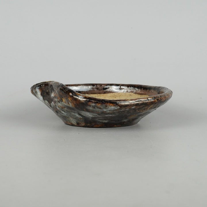盆栽鉢 文山 越前文山 小型 長辺 約18.5cm 変形 丸鉢 釉薬 現品 中古鉢 越前文山 1973年に鯖江園芸を開園する。 地元に伝わる越前焼に則って独自の作風を確立し、手びねりによる焼締の他、辰砂などの釉薬や象嵌を施したものがある。...
