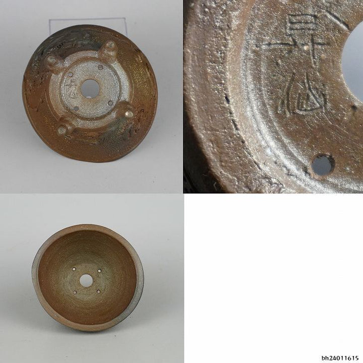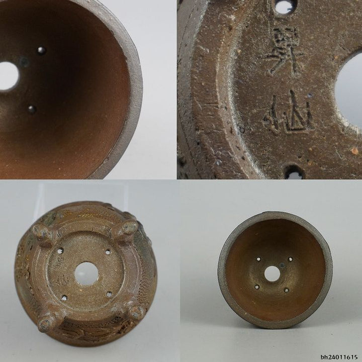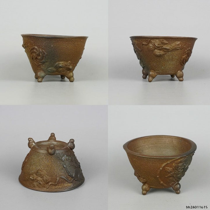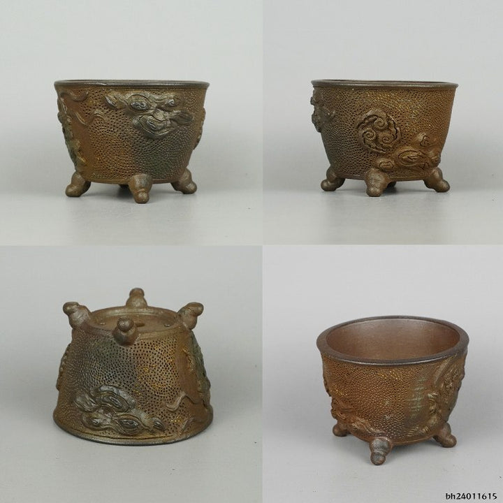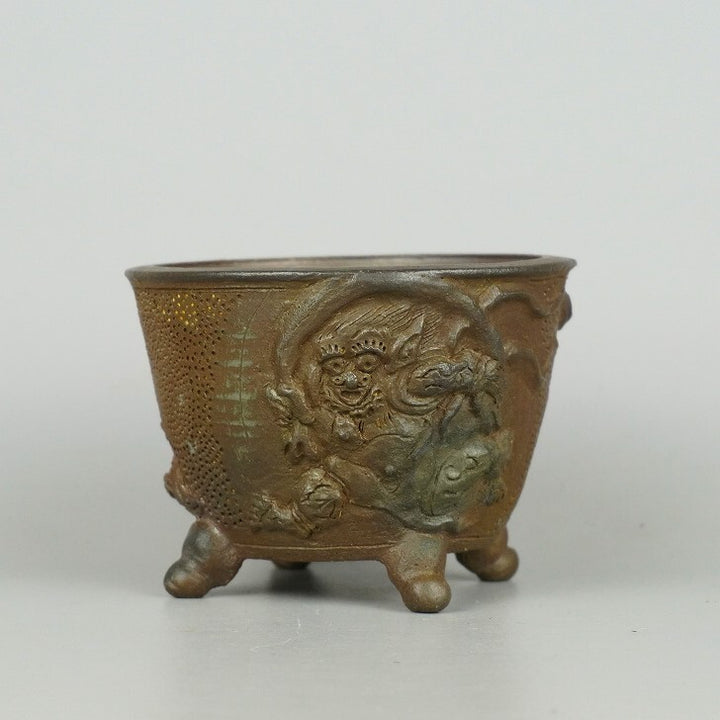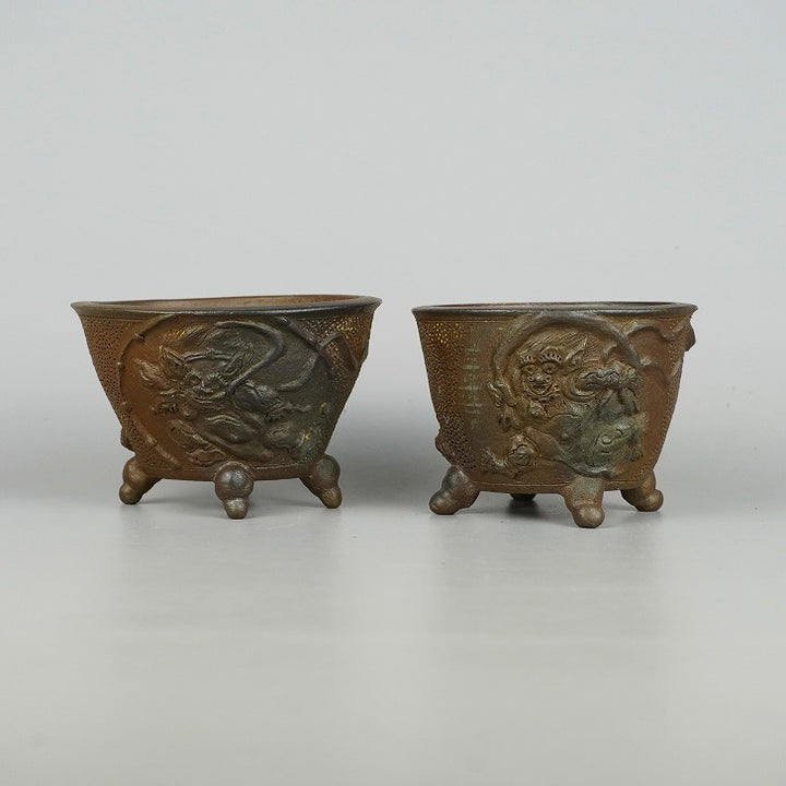 中古盆栽鉢 昇仙 2点セット 小型 長辺 約10.8cm 丸鉢 浮彫 雷神 風神 観賞用 中古鉢 m1198407875