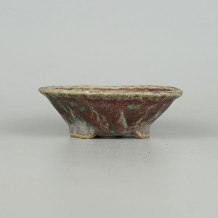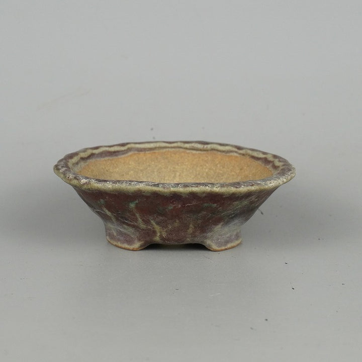 中古盆栽鉢 春嘉 はるよし 小型 長辺 約10.5cm 丸鉢 釉薬 中古鉢 b1198420425