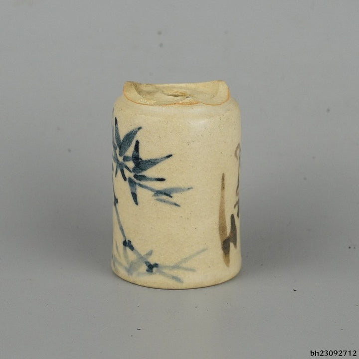 盆栽鉢 是好 常矩 小鉢 高さ 約 6cm 丸鉢 染付 竹 笹 観賞用 現品 中古鉢 品 名是好 矩 サイズ高さ 約6センチ...