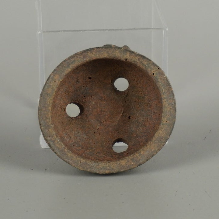 中古盆栽鉢 月之輪 涌泉 小鉢 長辺 約 6.3cm 丸鉢 縁付 泥物 布付 中古鉢 t1200648917