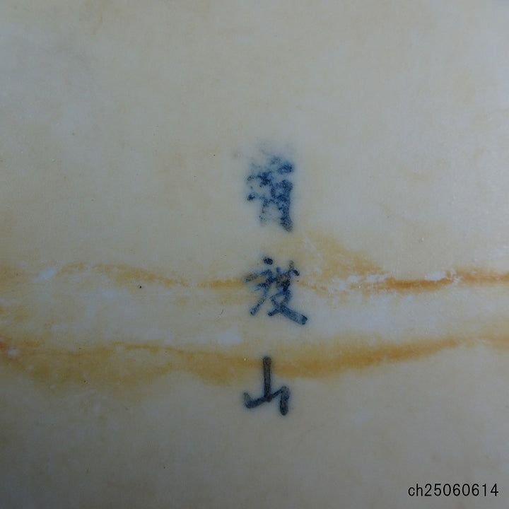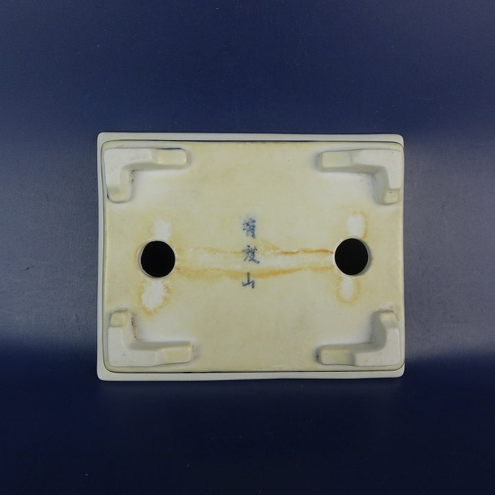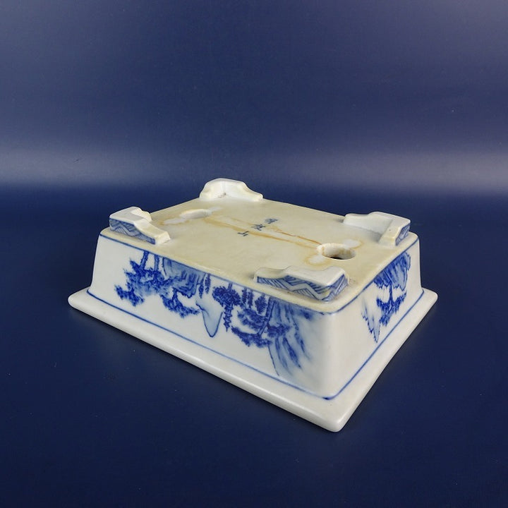 【中古】盆栽鉢 有度山 小型 長辺 約13.5cm 長方鉢 外縁 染付 風景 中国鉢 現品 中古鉢 品名落款あり...