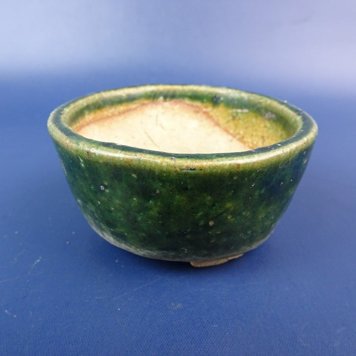 中古盆栽鉢 松山 小鉢 長辺 約6.6cm 丸鉢 釉薬 中古鉢 d1198422332