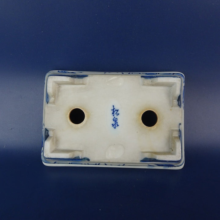 【中古】盆栽鉢 松泉 小型 長辺 約13.3cm 長方鉢 外縁 染付 風景画 人物 現品 中古鉢 品名松泉...