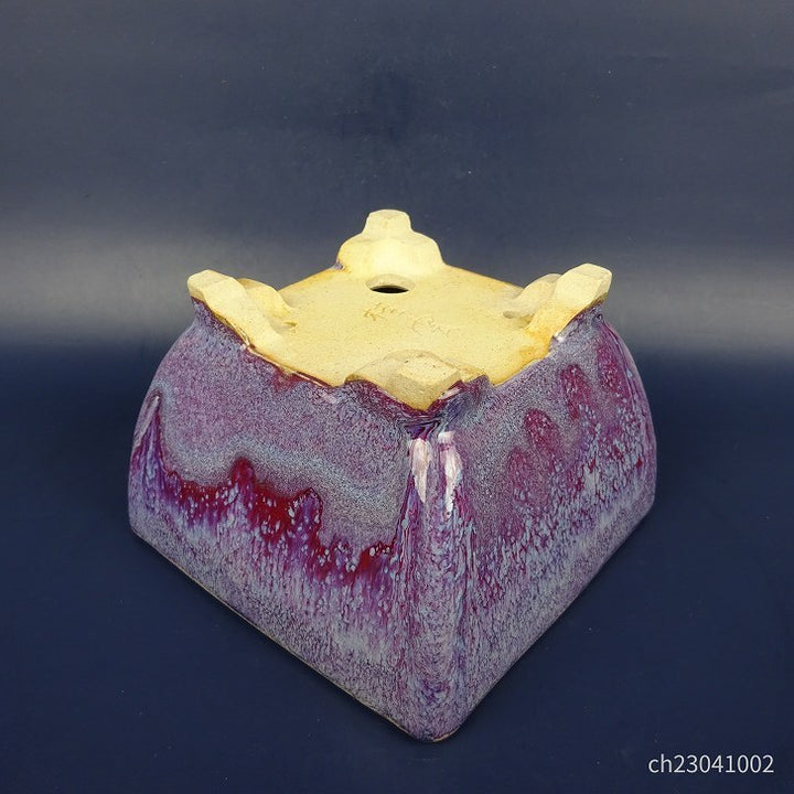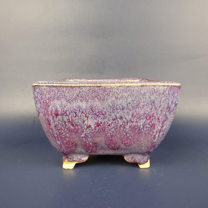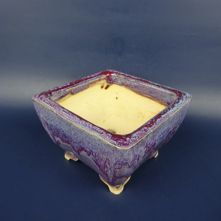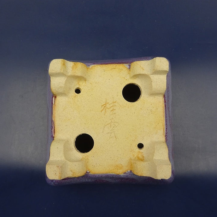 【中古】盆栽鉢 桂雲 福田桂雲 小型 長辺 約11.5cm 正方鉢 段足 釉薬 現品 中古鉢 桂雲 本名:福田康男 センスの良さで品質の高い釉薬鉢を作られる。 2020年 雅風展併催の現代小鉢作家展釉薬の部において金賞受賞 現代釉薬鉢作りの第一人者の福田茂氏が甥にあたり、茂氏主催の福田工房陶芸教室で学ばれる。 もともと盆栽愛好家であることから使い勝手の良い型、多彩な釉薬が特徴の鉢を手掛けられる。...