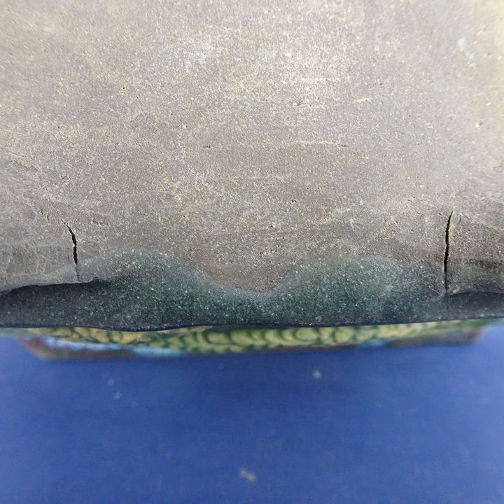 【中古】盆栽鉢 正志 古本 正志 小型 長辺 約13.5cm 正方鉢 龍 竜 浮彫 雲足 現品 中古鉢 品 名古本 正志...