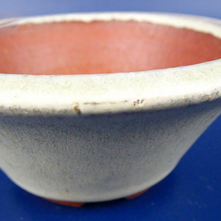 中古盆栽鉢 燿山 小型 長辺 約10cm 丸鉢 白釉 釉薬 中古鉢 f1198409786