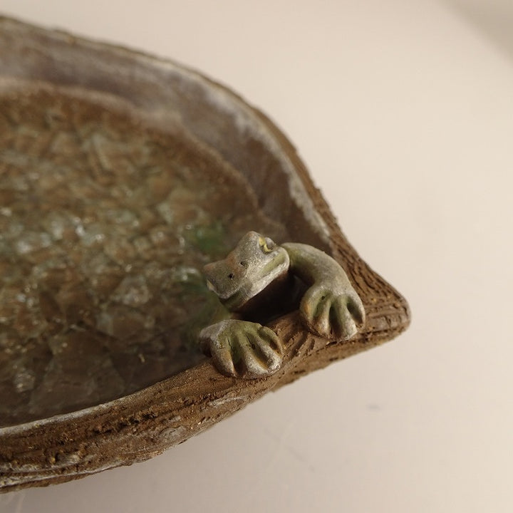 【中古】盆栽鉢 神戸 小型 長辺 約17.6cm 丸鉢 変形鉢 泥鉢 かえる カエル 蛙 現品 中古鉢 品名神戸...