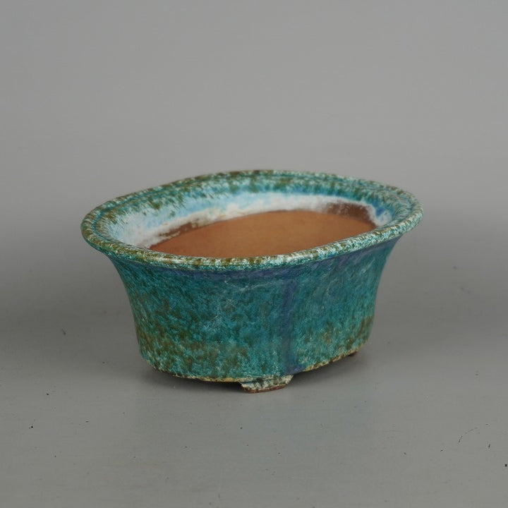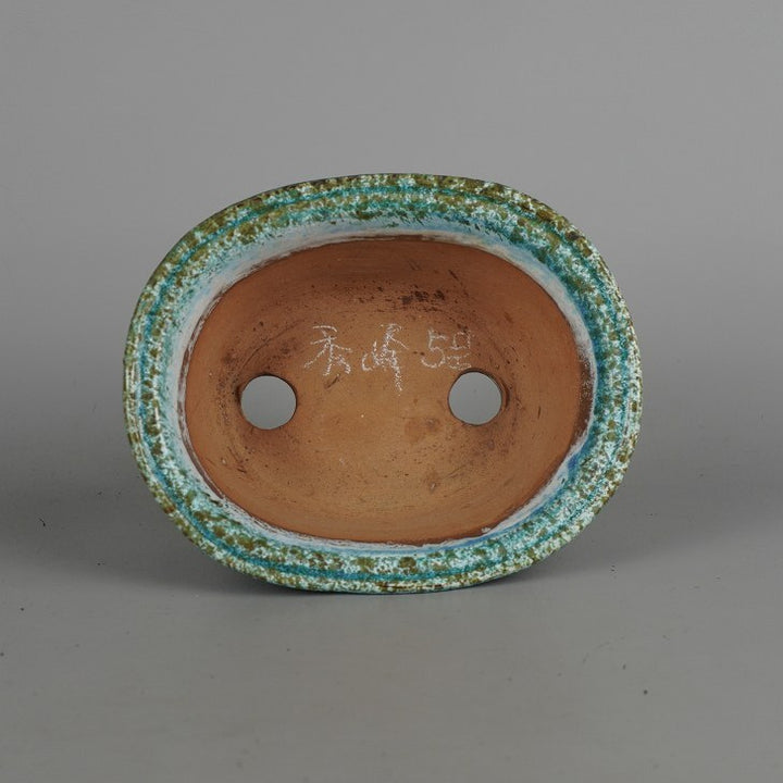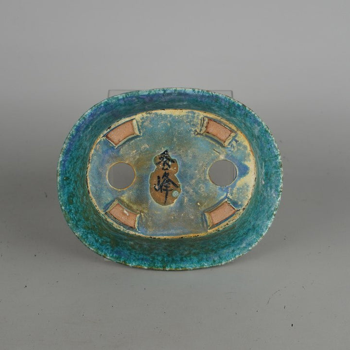 中古盆栽鉢 秀峰 小型 長辺 約 15.5cm 楕円鉢 外縁 釉薬 中古鉢 1198410351