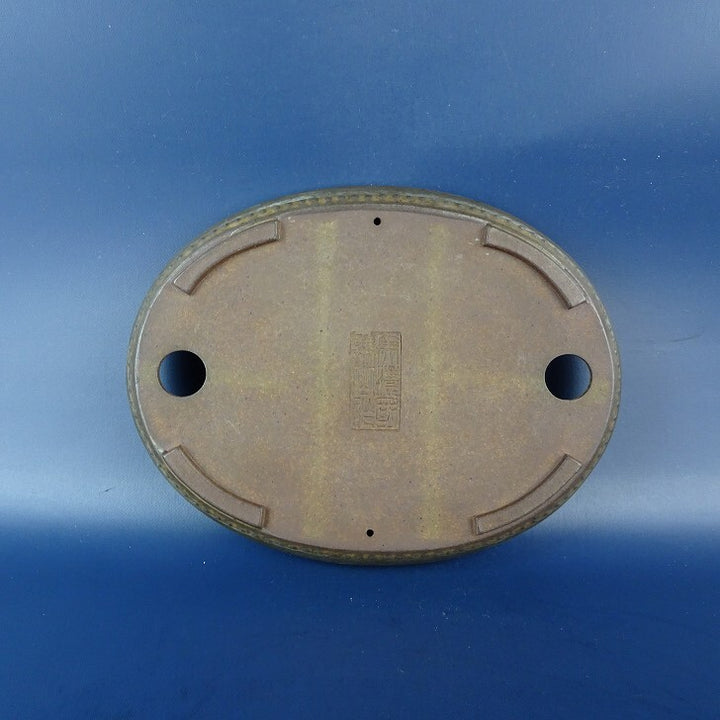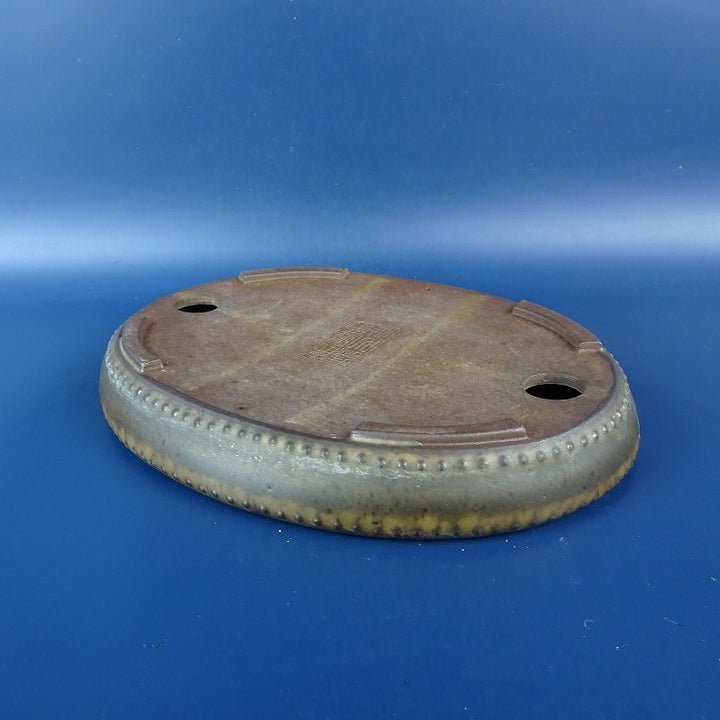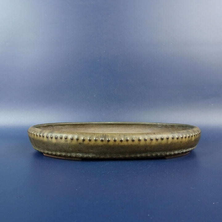中古盆栽鉢 美濃謙山 小型 長辺 約 18cm 楕円鉢 鋲打 釉薬 中古鉢 u1198429415