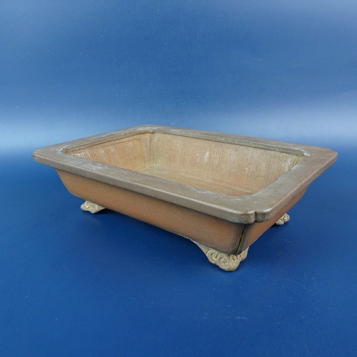 中古盆栽鉢 美芸 小型 長辺 約15.4m 長方鉢 外縁 隅入 雲足 泥鉢 中古鉢 g1198415892