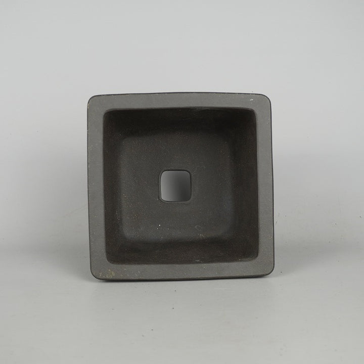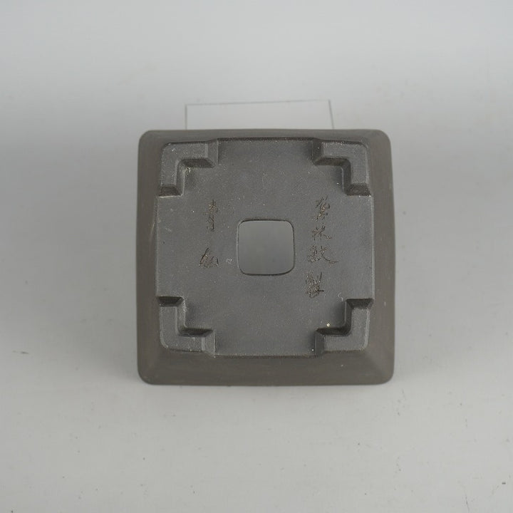 盆栽鉢 落款あり 小型 長辺 約 15.2cm 正方鉢 泥物 現品 中古鉢 品名落款あり...
