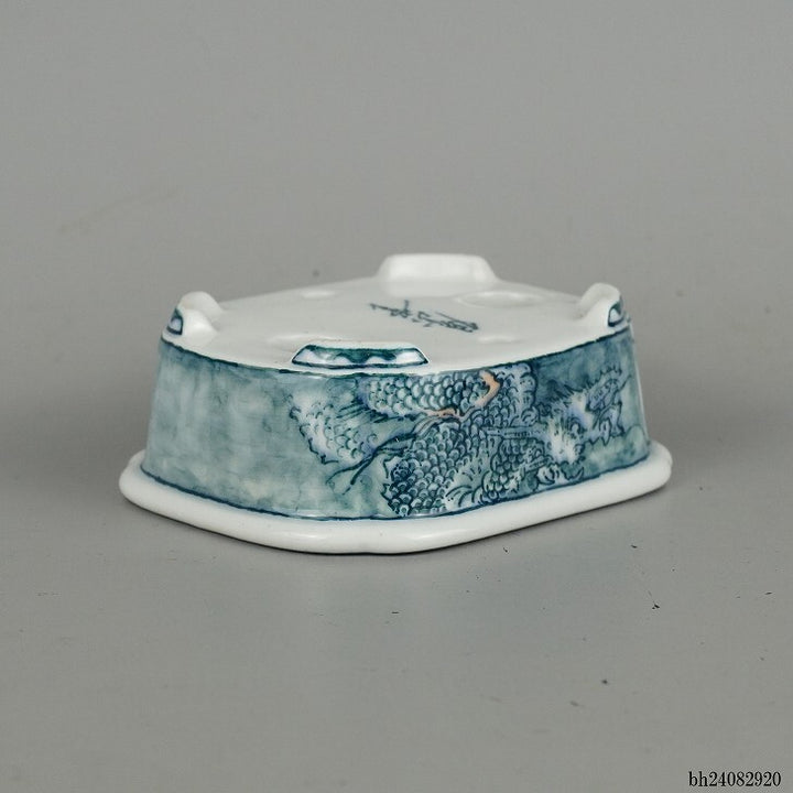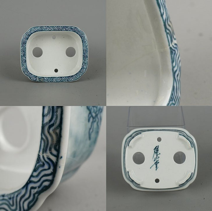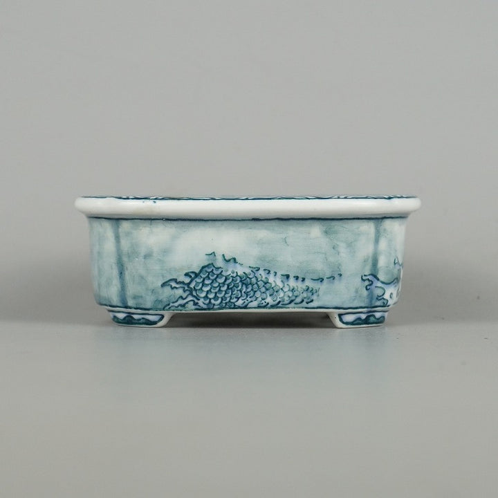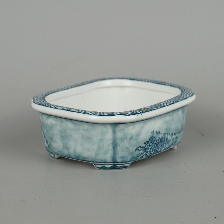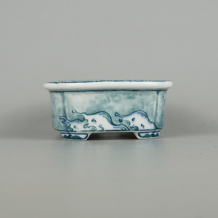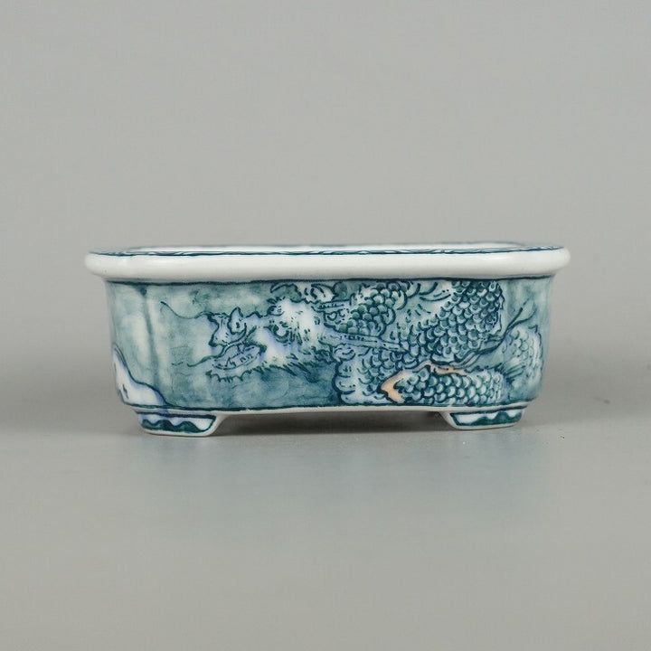 盆栽鉢 落款あり 小型 長辺 約10.3cm 長方鉢 龍 波 リュウ 中国鉢 観賞用 現品 中古鉢 品名落款あり...