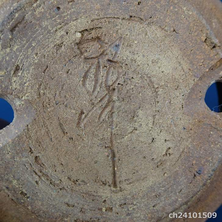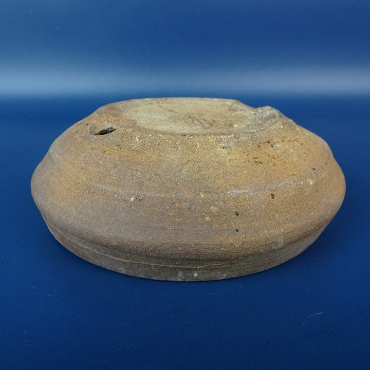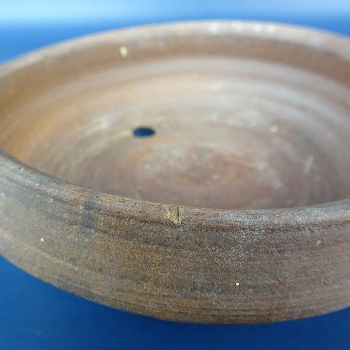 【中古】盆栽鉢 落款あり 小型 長辺 約13.5cm 丸鉢 泥鉢 現品 中古鉢 品名落款あり...