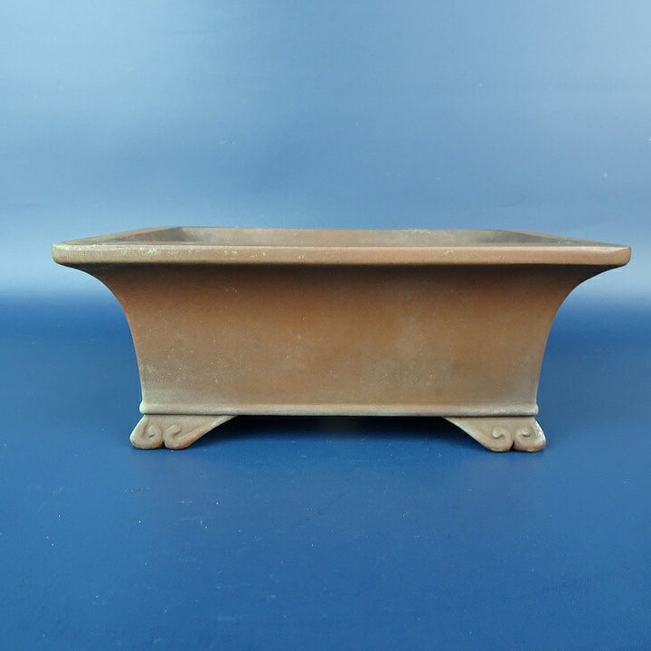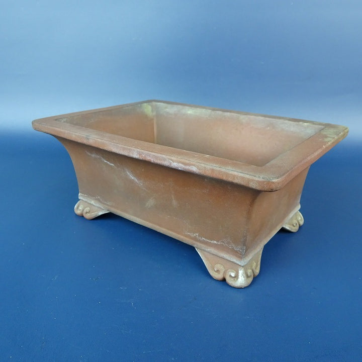 中古盆栽鉢 落款あり 小型 長辺 約15.5cm 長方鉢 外縁 雲足 下帯 泥鉢 中古鉢 n1198411967