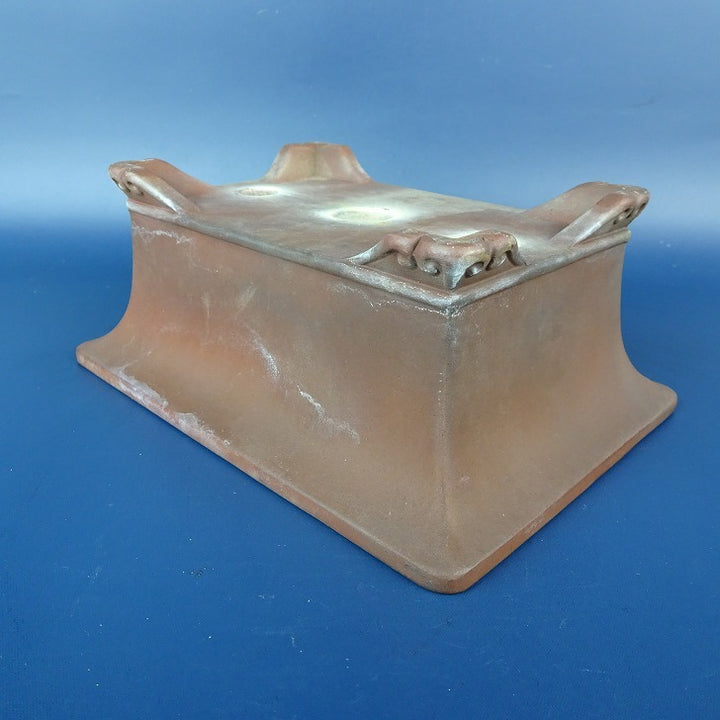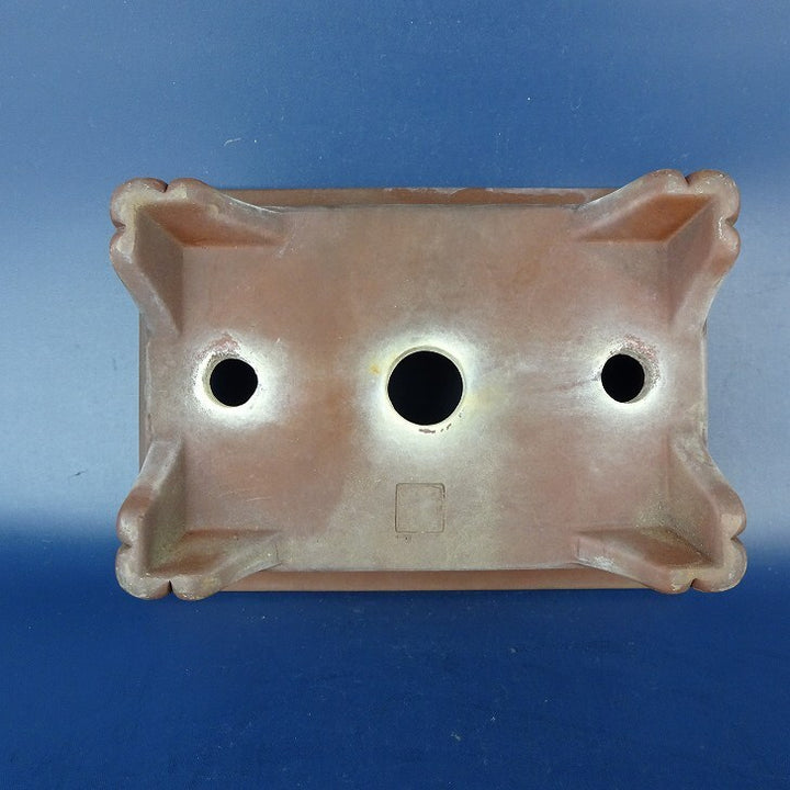 【中古】盆栽鉢 落款あり 小型 長辺 約15.5cm 長方鉢 外縁 雲足 泥鉢 現品 中古鉢 品名落款あり...