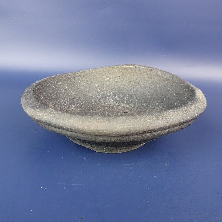 【中古】盆栽鉢 落款あり 小型 長辺 約16cm 変形 丸鉢 泥鉢 現品 中古鉢 品名落款あり...