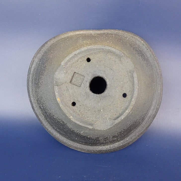 中古盆栽鉢 落款あり 小型 長辺 約16cm 変形 丸鉢 泥鉢 中古鉢 p1198411895