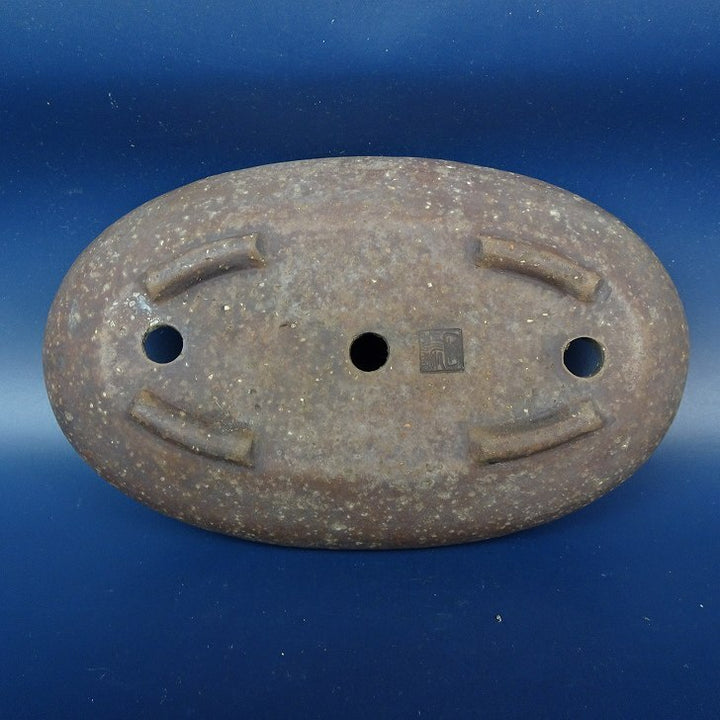 中古盆栽鉢 落款あり 小型 長辺 約17.5cm 楕円鉢 泥鉢 中古鉢 e1198417002