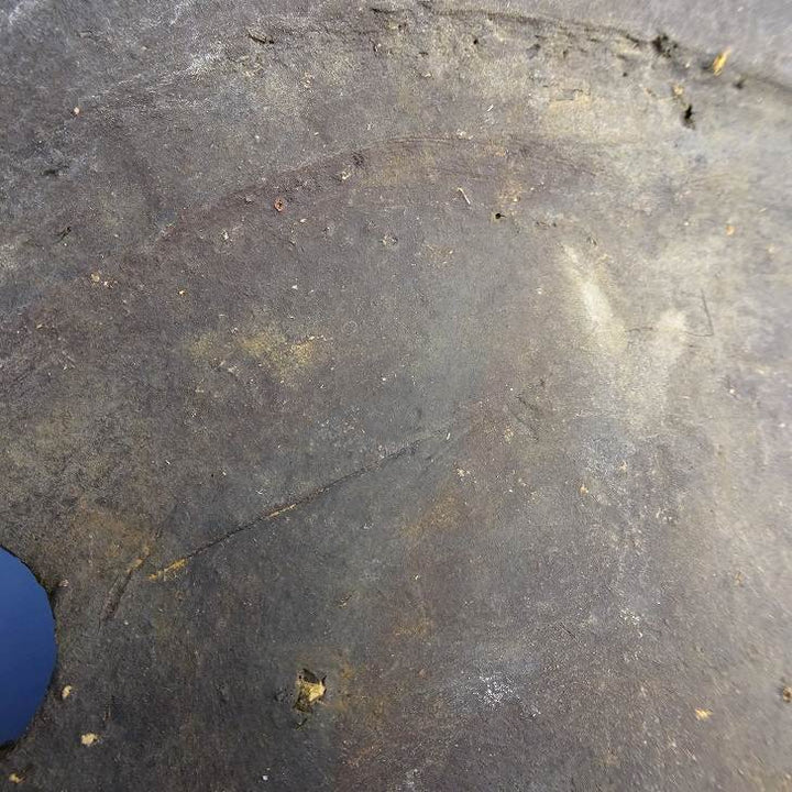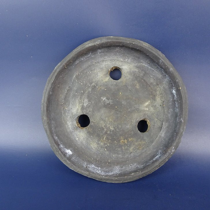 【中古】盆栽鉢 落款あり 小型 長辺 約17cm 丸鉢 外縁 泥鉢 現品 中古鉢 品名落款あり...