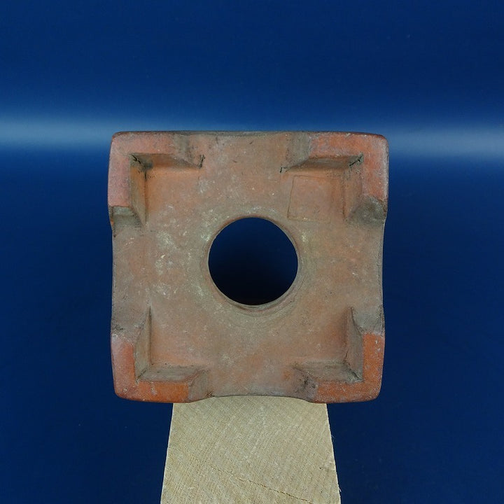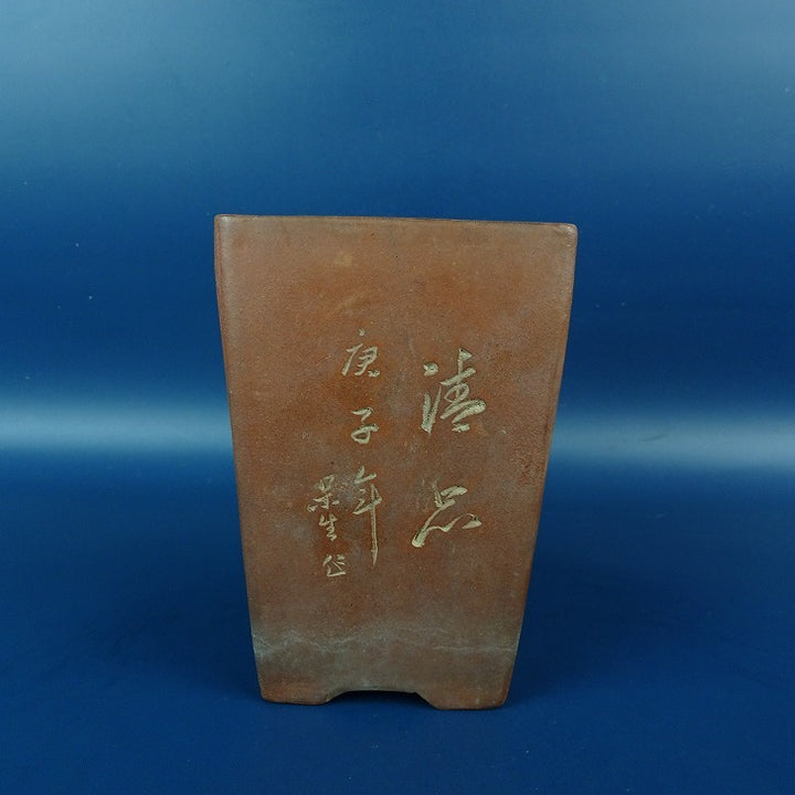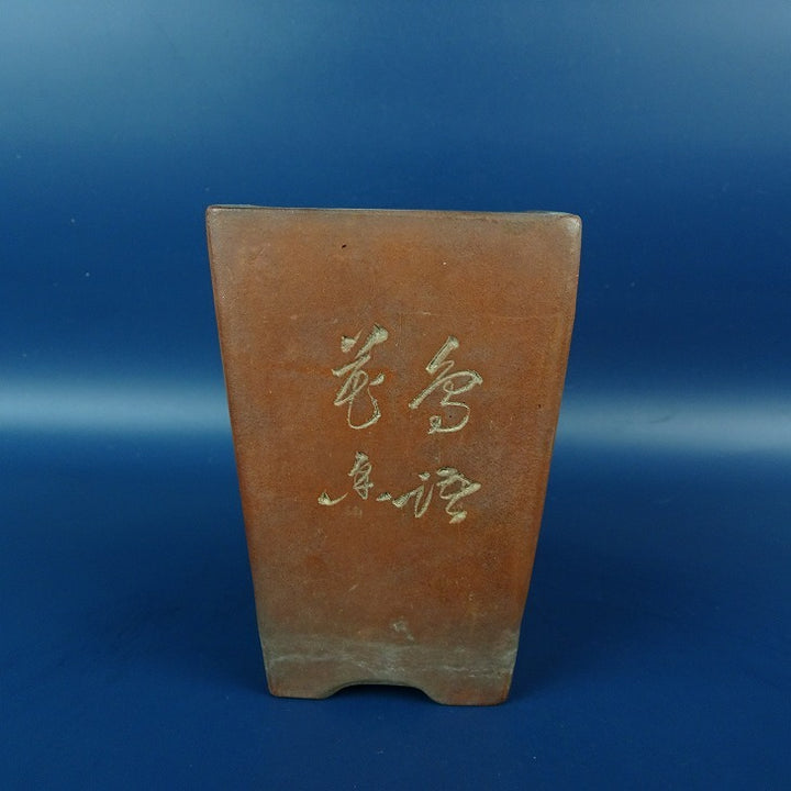 中古盆栽鉢 落款あり 小型 高さ 約 12.2cm 正方鉢 釘彫 花 文字 泥鉢 観賞用 中古鉢 s1198410343