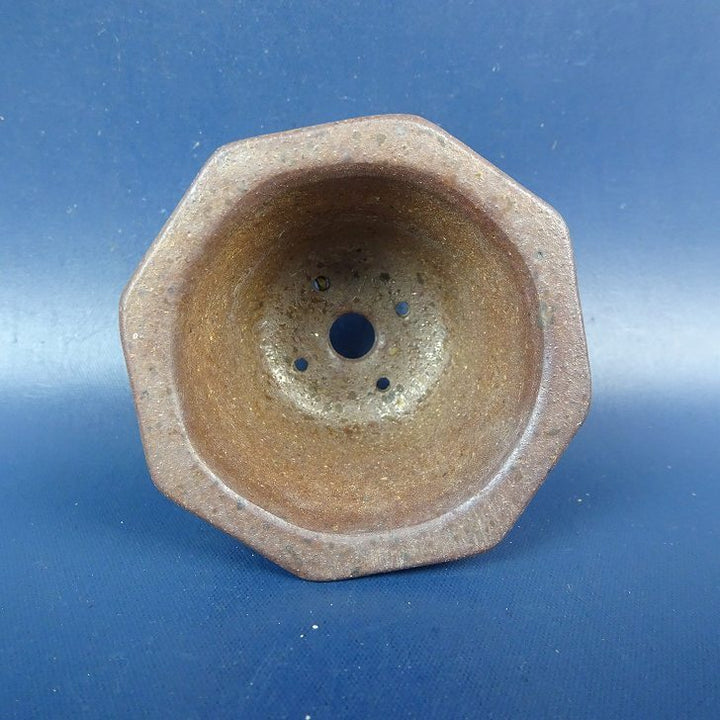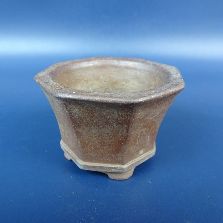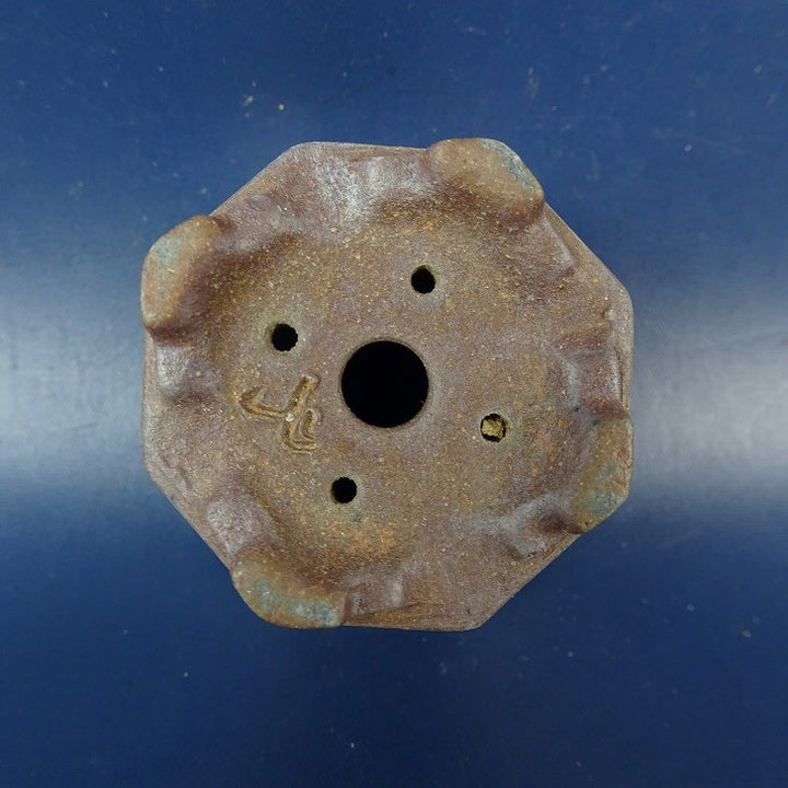 中古盆栽鉢 落款あり 小鉢 長辺 約5.4cm 八角鉢 外縁 泥鉢 中古鉢 b1198423310