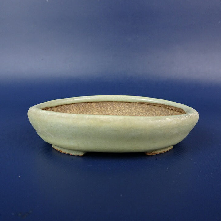 中古盆栽鉢 落款あり 小鉢 長辺 約8cm 楕円鉢 釉薬 中古鉢 f1198416004