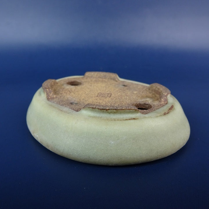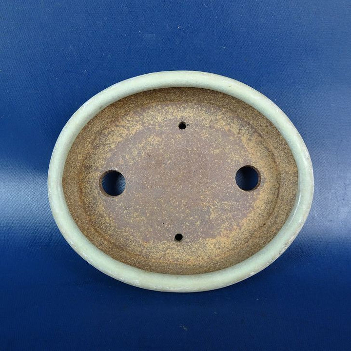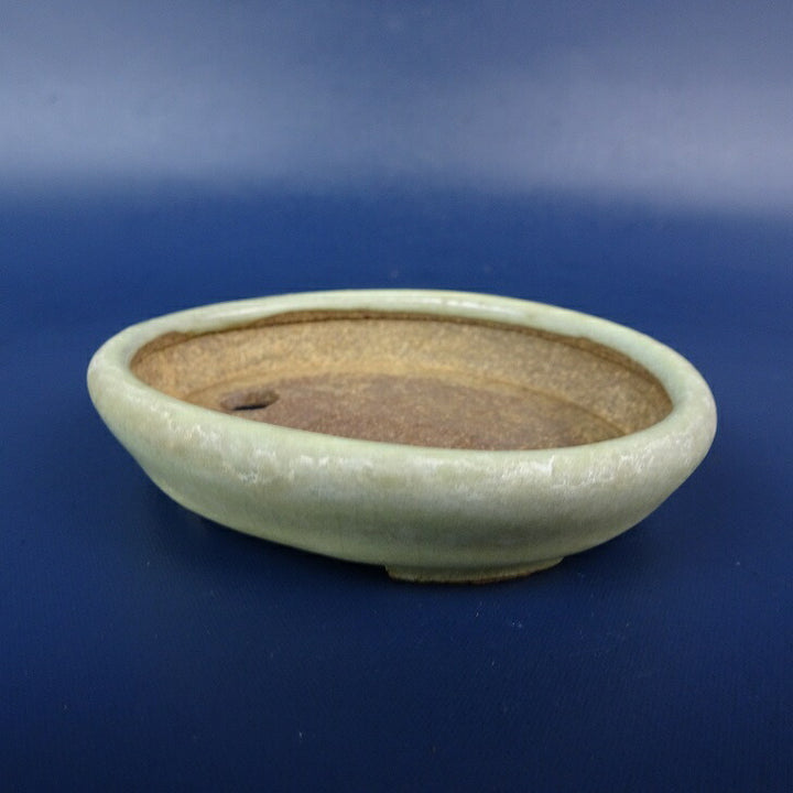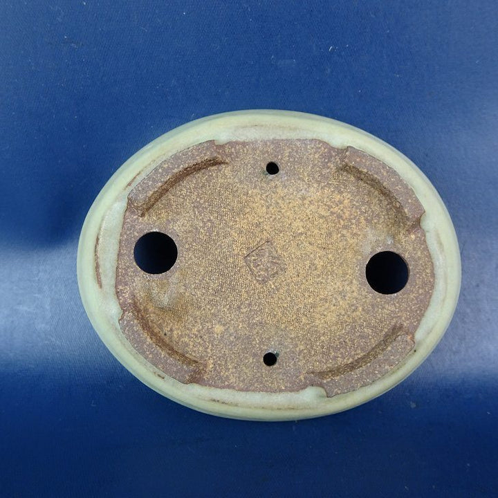 【中古】盆栽鉢 落款あり 小鉢 長辺 約8cm 楕円鉢 釉薬 現品 中古鉢 品名落款あり...