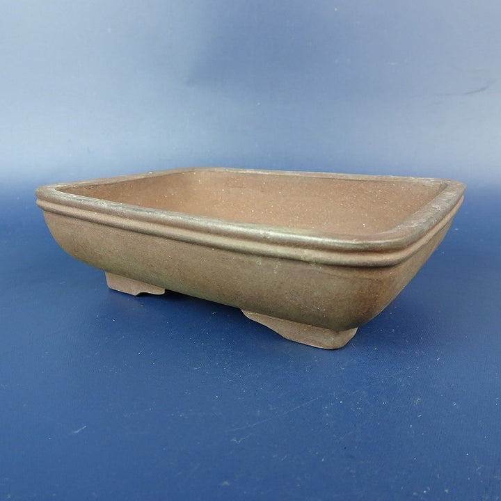 中古盆栽鉢 落款なし 小型 長辺 約 12cm 長方鉢 段足 上帯 泥鉢 中古鉢 m1198412602