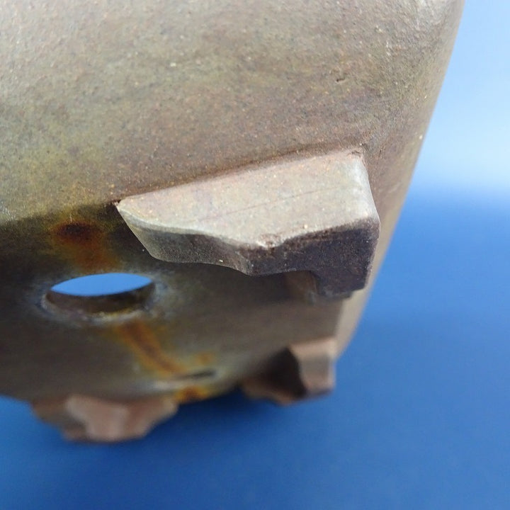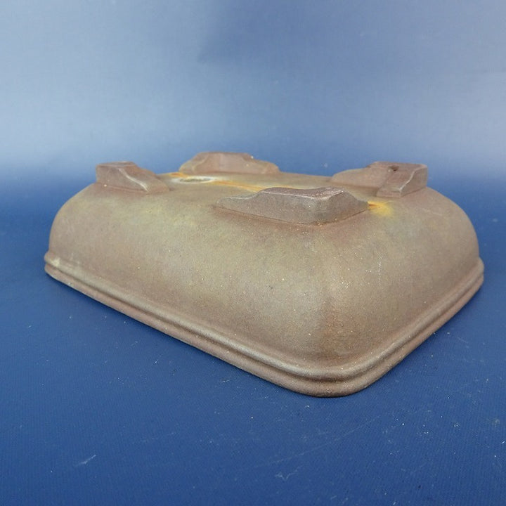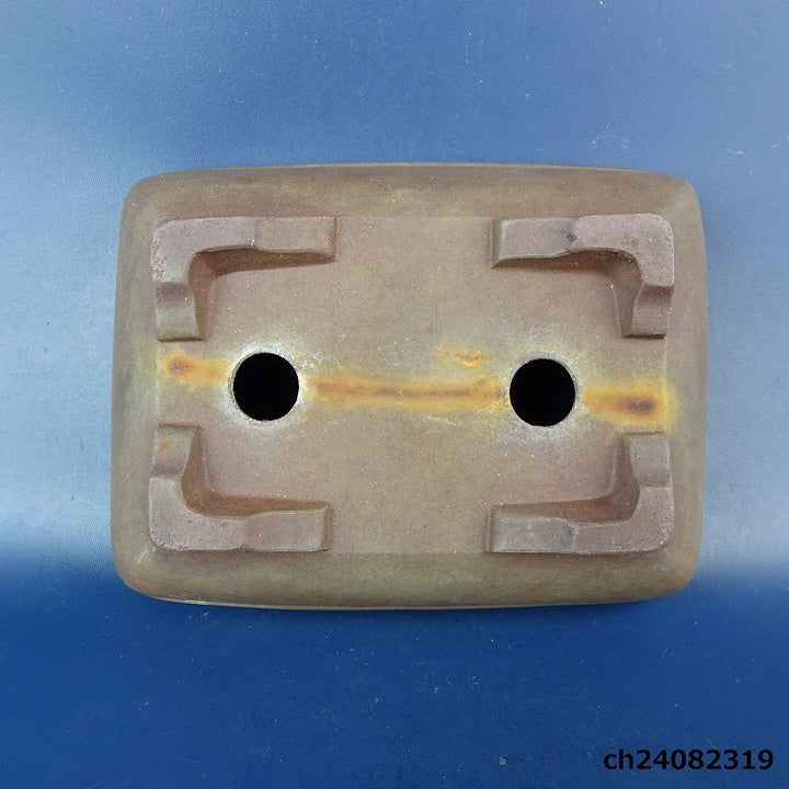 【中古】盆栽鉢 落款なし 小型 長辺 約 12cm 長方鉢 段足 上帯 泥鉢 現品 中古鉢 品名落款なし...
