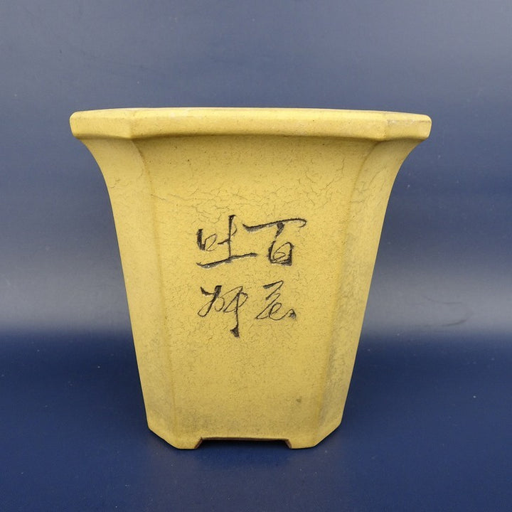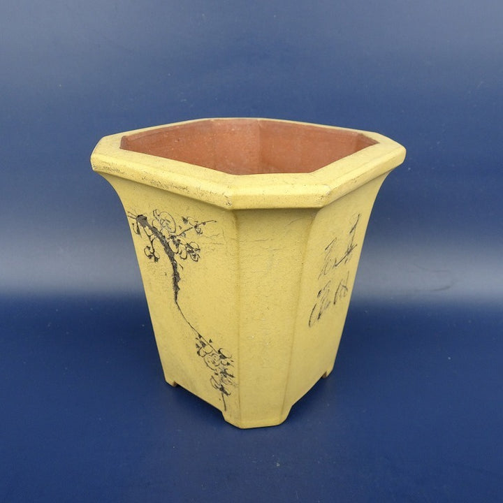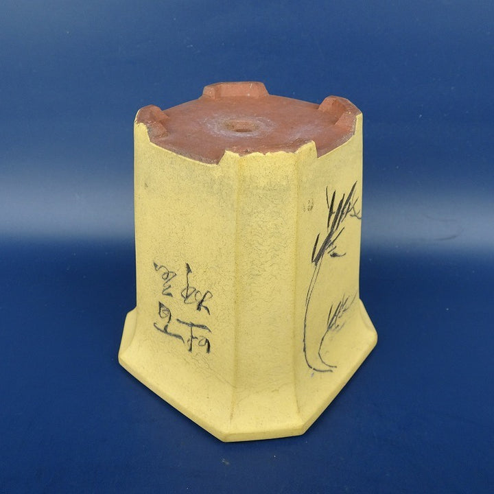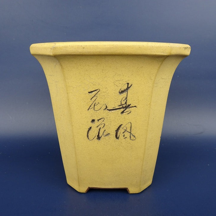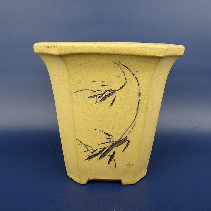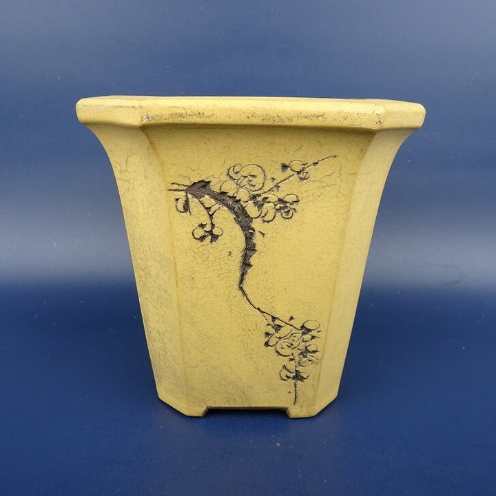 中古盆栽鉢 落款なし 小型 高さ 約10.5cm 正方鉢 隅切 外縁 彫入 花 中古鉢 c1198410366