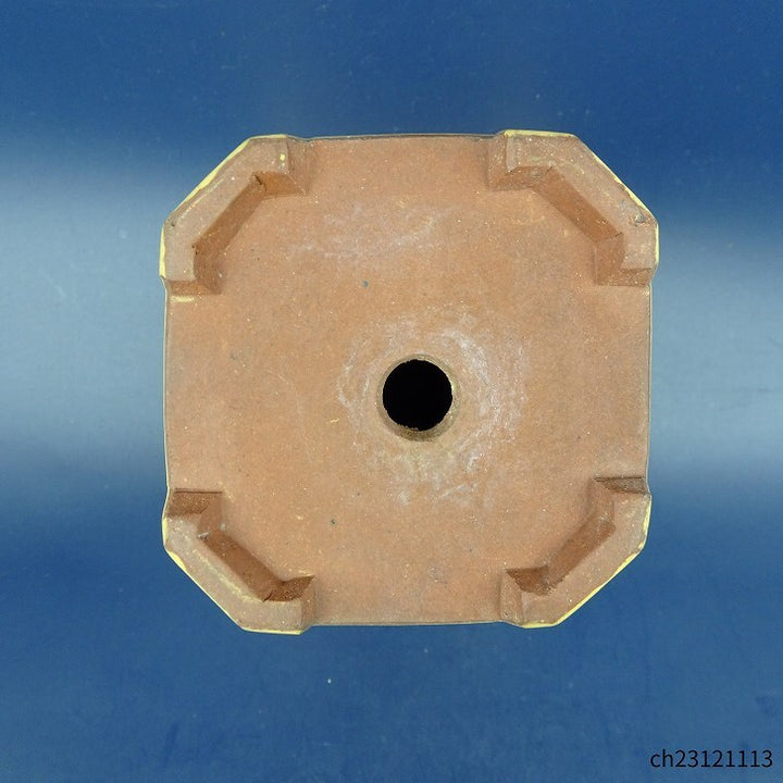 【中古】盆栽鉢 落款なし 小型 高さ 約10.5cm 正方鉢 隅切 外縁 彫入 現品 中古鉢 品名落款なし サイズ高さ 約10.5センチ...