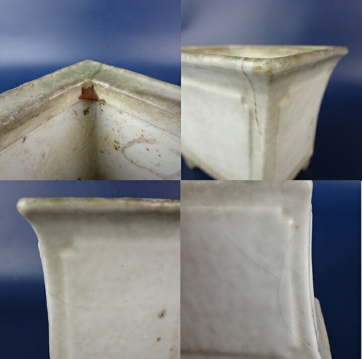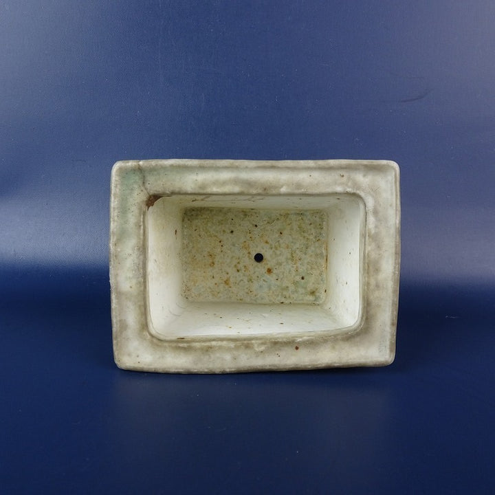 中古盆栽鉢 落款なし 小鉢 長辺 約 9.5cm 長方鉢 外縁 窓付 釉薬 観賞用 中古鉢 n1198414851