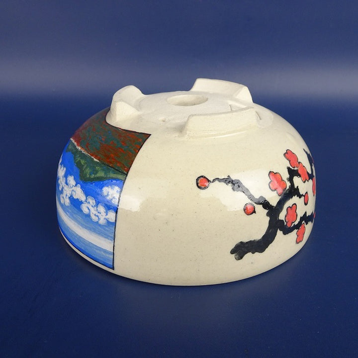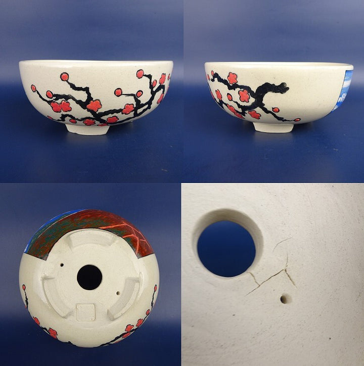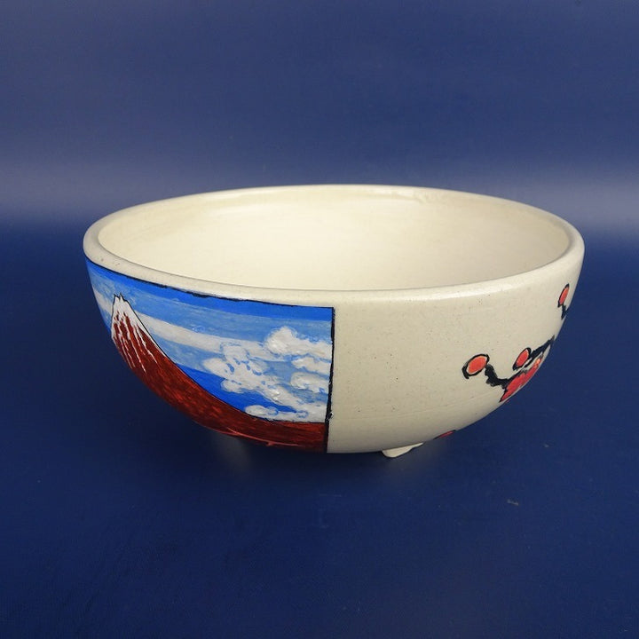 【中古】盆栽鉢 蝉山 小型 長辺 約13cm 丸鉢 色絵 風景画 富士山 現品 中古鉢 一つ一つ丁寧に作られた絵鉢です。...