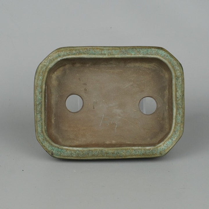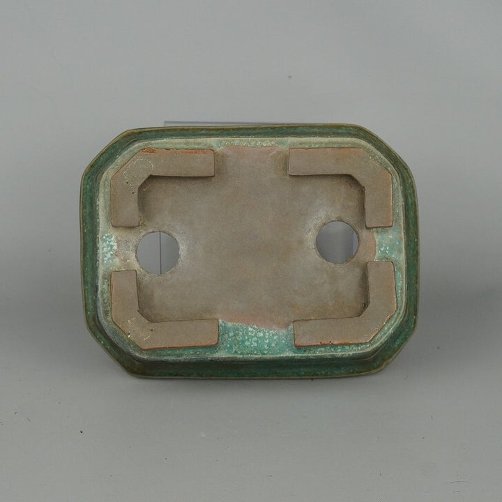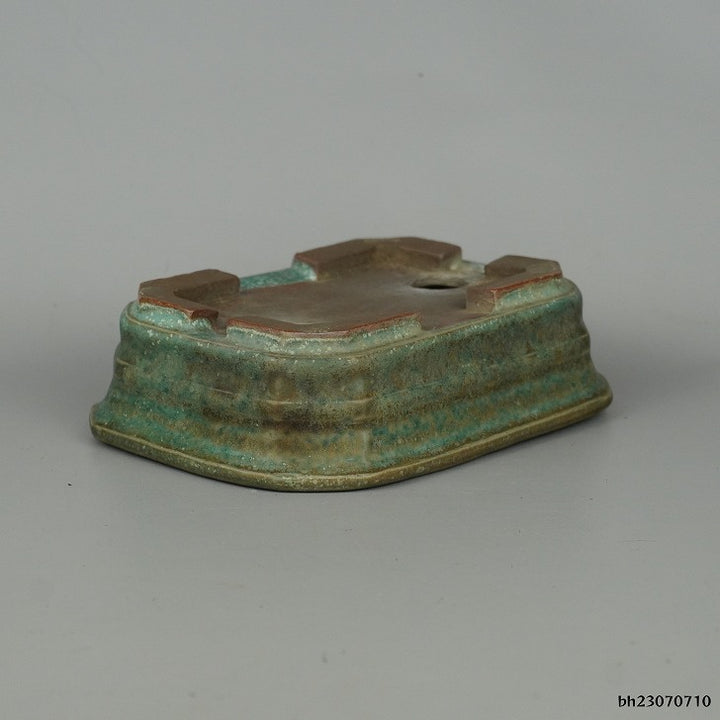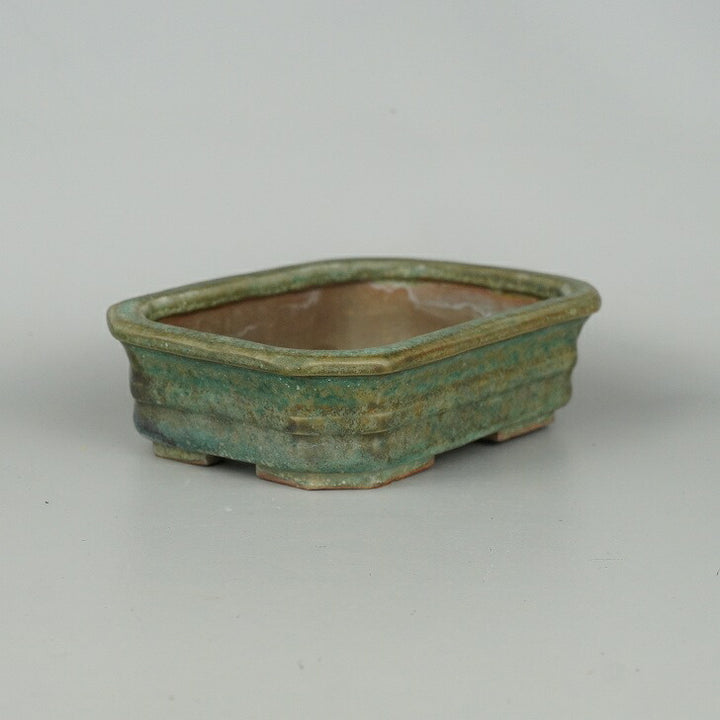 中古盆栽鉢 遊見 小型 長辺 約13.5cm 長方鉢 隅切 中帯 釉薬 中古鉢 e1198407637