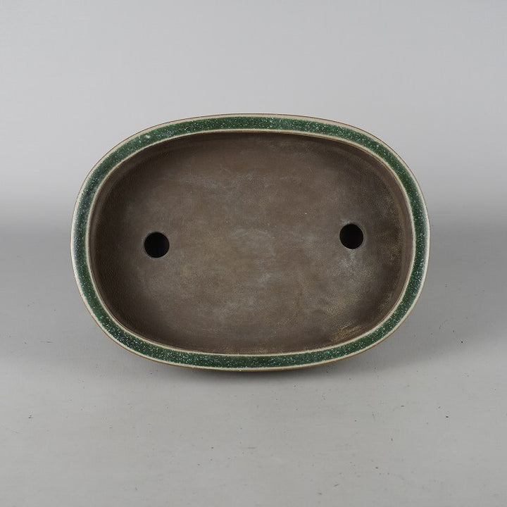 中古盆栽鉢 陶翠 中型 長辺 約 26.5cm 楕円鉢 釉薬 中古鉢 p1198413834