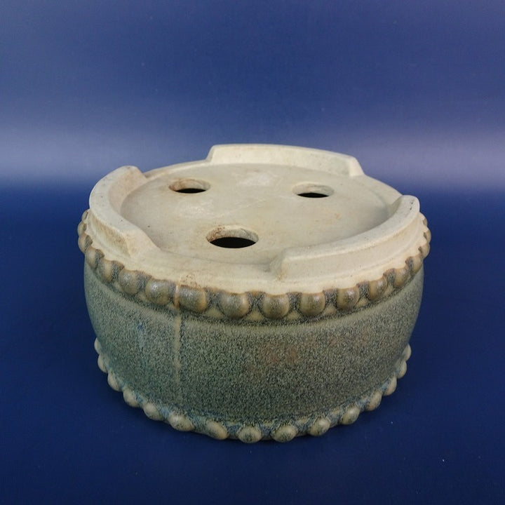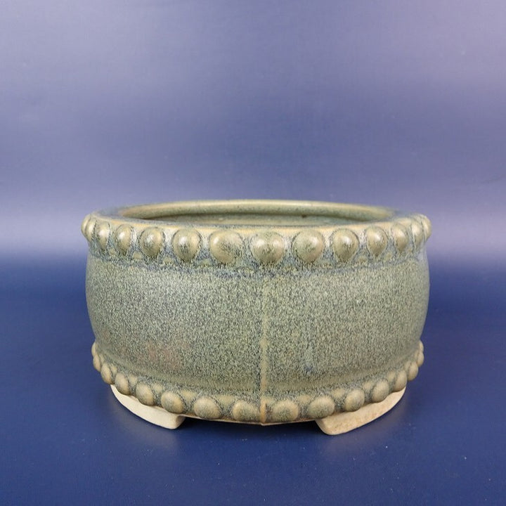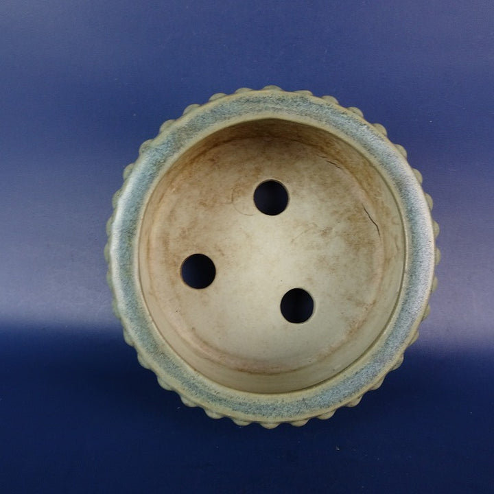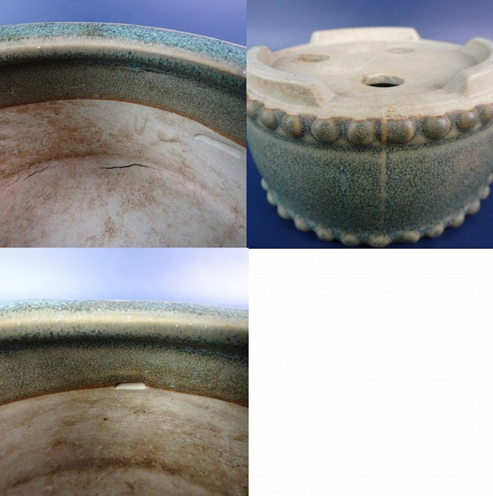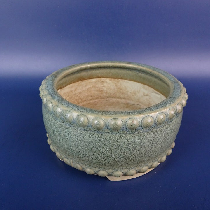 中古盆栽鉢 陶翠 小型 長辺 約 11cm 丸鉢 鋲打 釉薬 中古鉢 1198404077