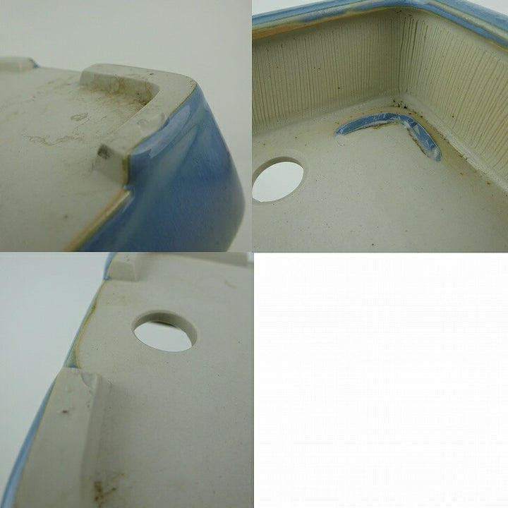 中古盆栽鉢 青香 小型 長辺 約 14.3cm 長方鉢 釉薬 中古鉢 t1198413458