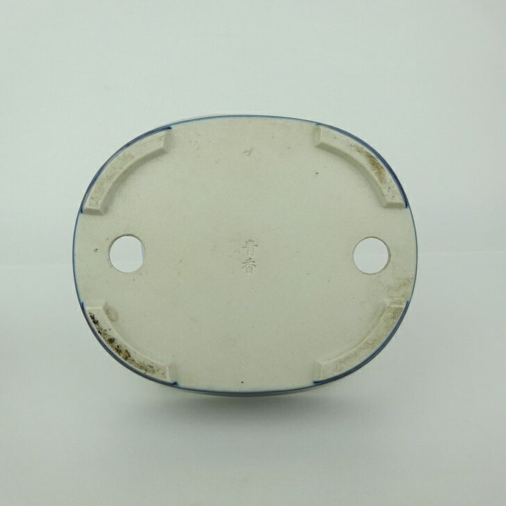 盆栽鉢 青香 小型 長辺 約 14.5cm 楕円 鉢 釉薬 現品 中古鉢 品名青香...