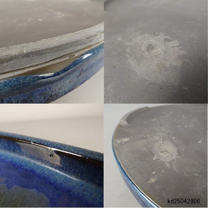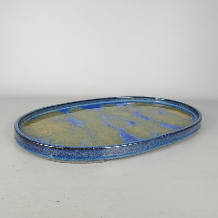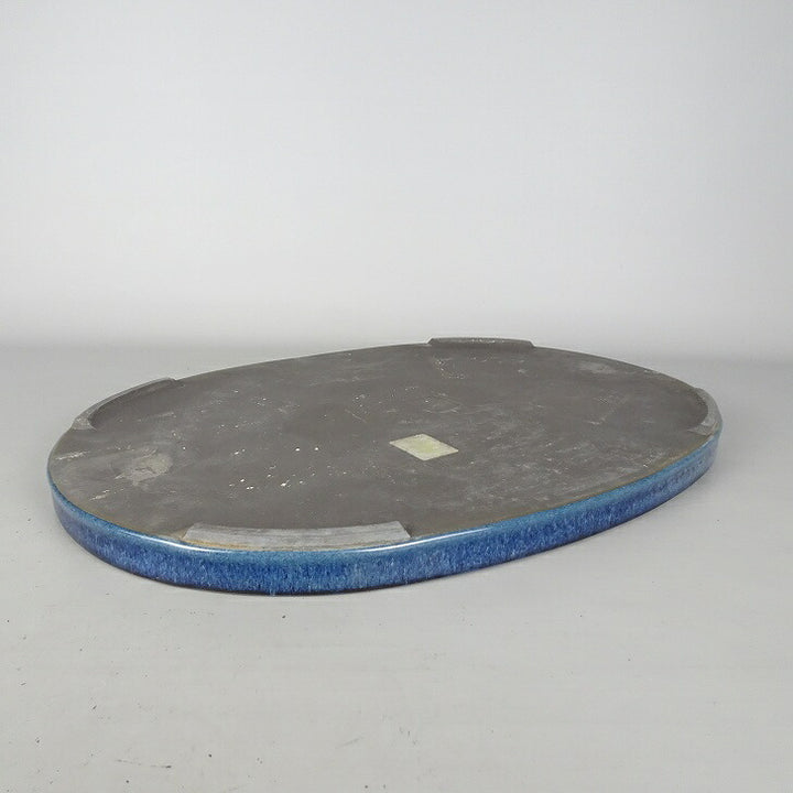 水盤 春松 中型 長辺 約 47.5cm 楕円 鉢 水石 盆栽 花器 釉薬 現品 中古 品名水盤  (春松)...